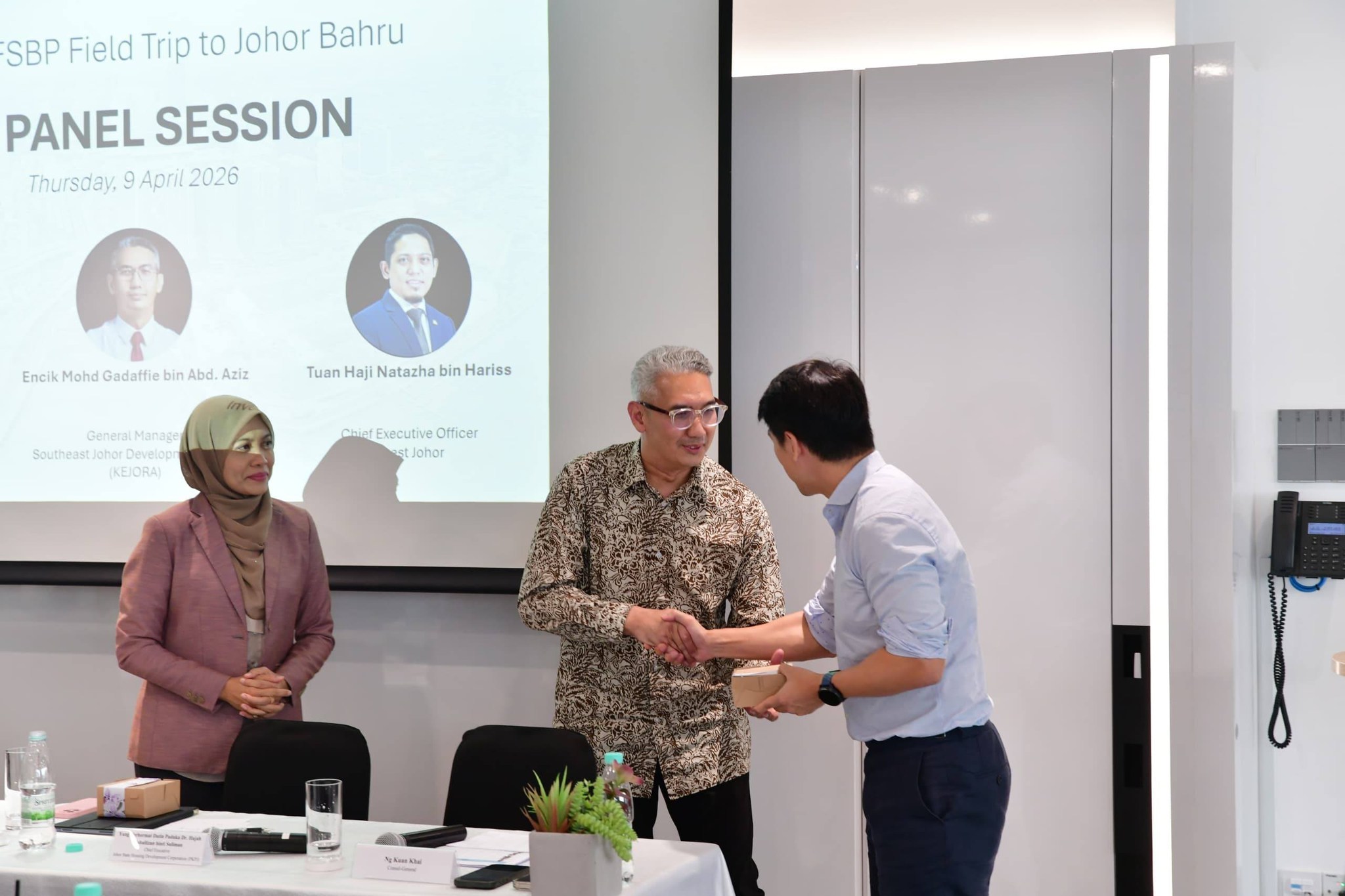 Konsulat Jeneral Republik Singapura di Johor Bahru telah menjemput YBrs. Encik Mohd Gadaffie bin Abd Aziz, Pengurus Besar KEJORA sebagai penceramah dalam program Foreign Service Basic Programme (FSBP) yang berlangsung pada 9 April 2026. Program ini merupakan sebahagian daripada lawatan rasmi pegawai daripada Kementerian Hal Ehwal Luar Singapura ke Johor Bahru yang bertujuan memberikan pendedahan secara langsung terhadap perkembangan semasa negeri Johor serta memperkukuh kefahaman mengenai hubungan dua hala antara Johor dan Singapura.