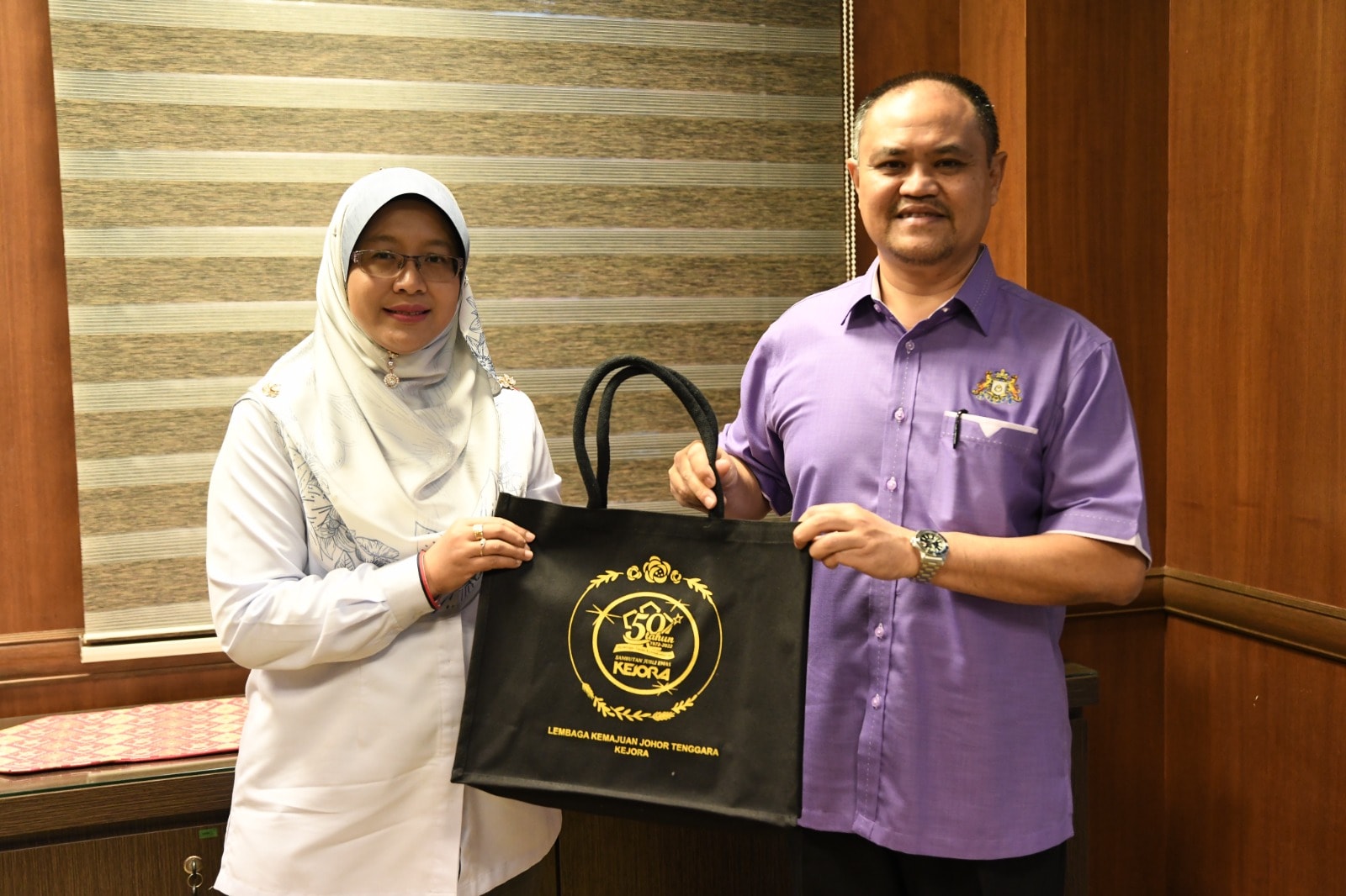 NUSAJAYA, 12 Februari – Pengurus Besar KEJORA, Yang Berhormat Datin Paduka Hajah Hazlina binti Jalil hari ini mengadakan kunjungan hormat ke atas Pengarah Tanah & Galian Johor, YBhg. Tuan Haji Mohammed Shakib bin Haji Ali.