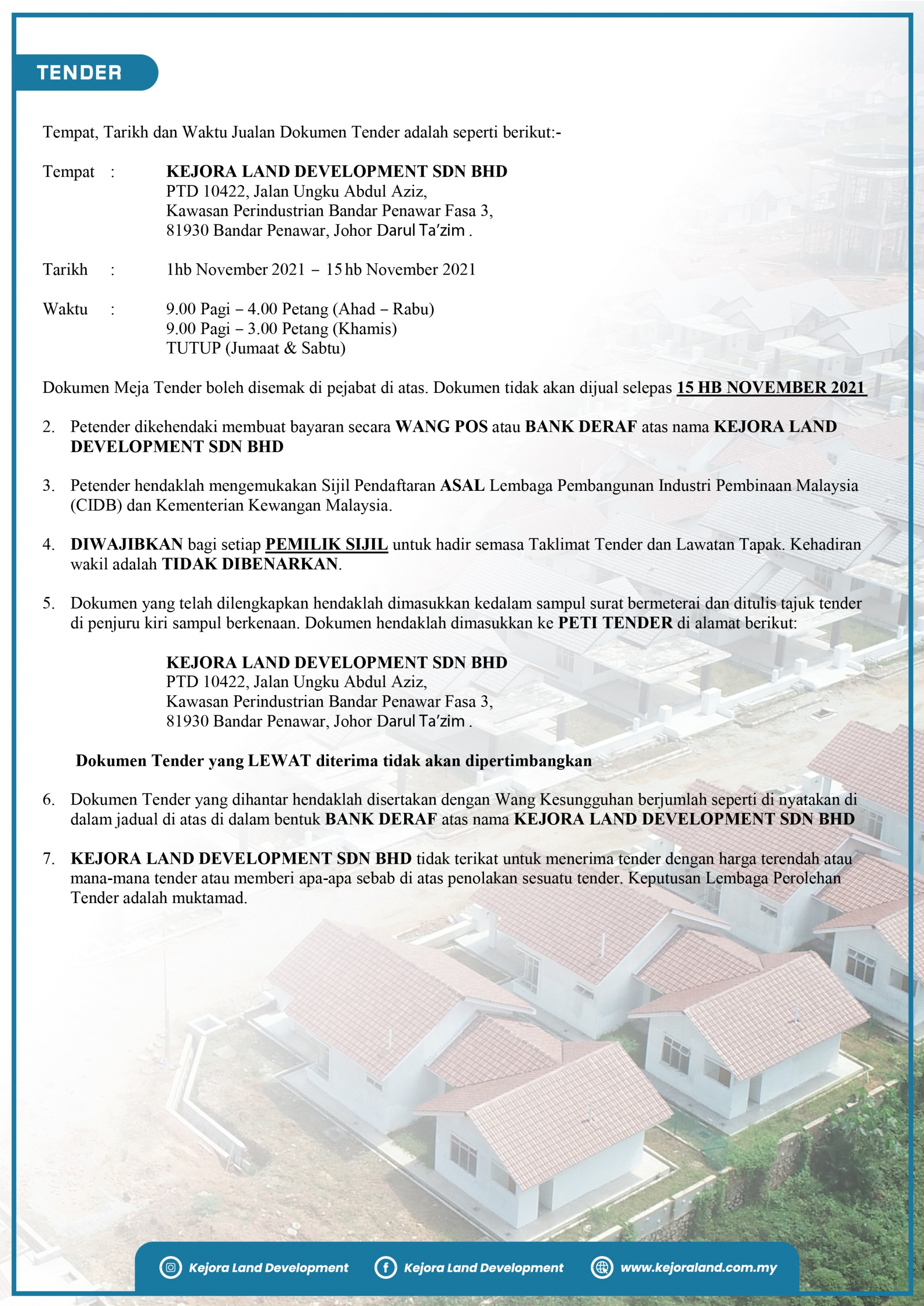 PROJEK PENYIAPAN BAKI KERJA BAGI CADANGAN PEMBANGUNAN KAMPUNG TERSUSUN DI ATAS SEBAHAGIAN PTD 10391 SELUAS 22.70 EKAR DI KAWASAN KAMPUNG PAYA, MUKIM LAYANG-LAYANG, DAERAH SIMPANG RENGGAM, KLUANG JOHOR DARUL TA’ZIM.